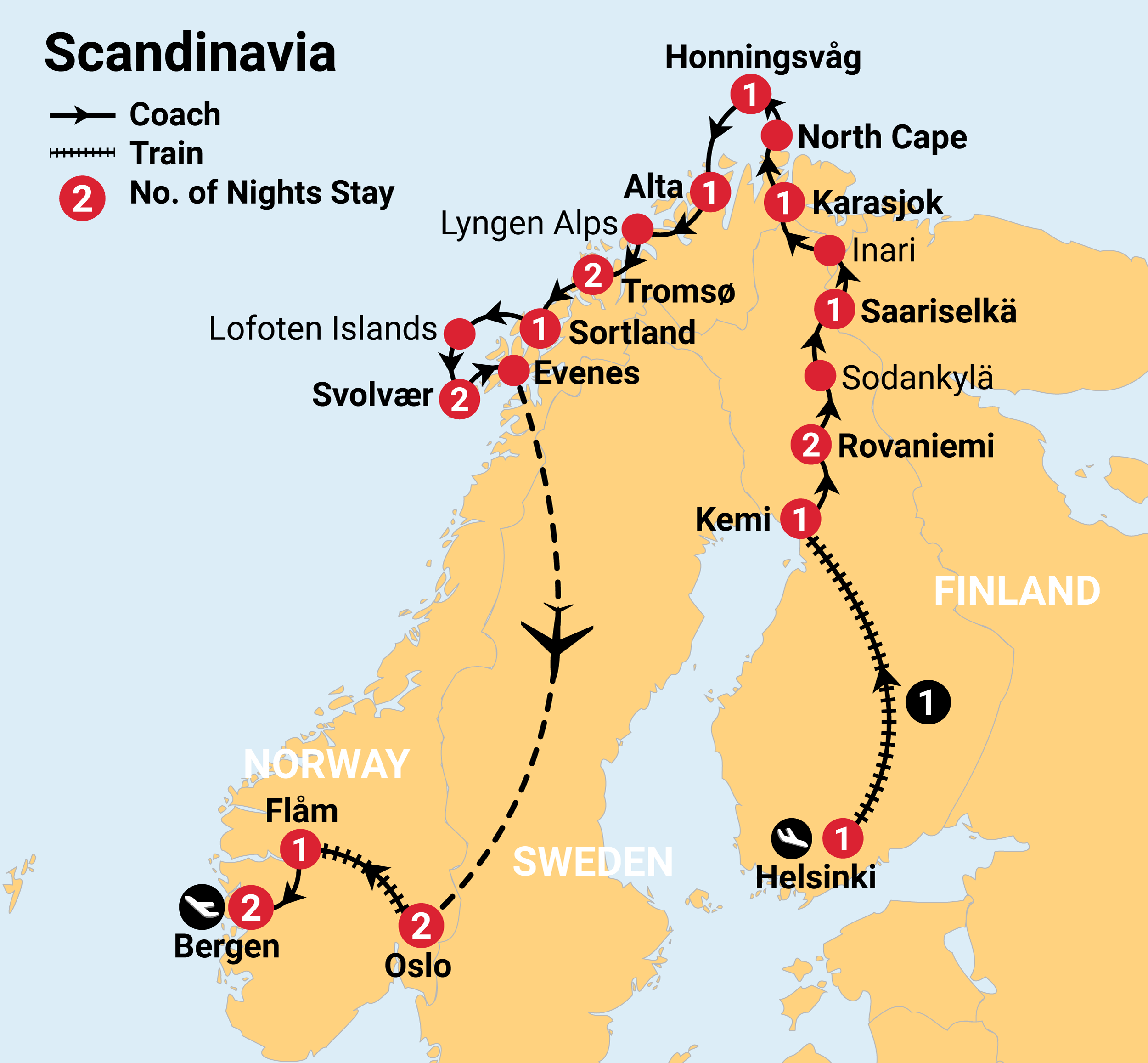Today marks the end of your magnificent and unforgettable tour through Northern Scandinavia.Thank you for travelling with Inspiring Vacations. We hope you had a memorable experience.Special InformationAirport transfers are not included. Our transfer portal offers the option to book your airport transfers for an easier arrival experience (additional charges apply). Access to this portal will be available through your Traveller Hub once your booking is confirmed.