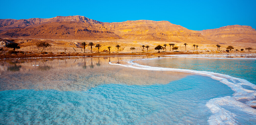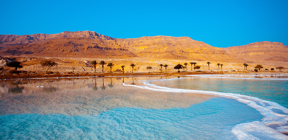 Later, we'll drive for approximately two hours to reach a radically different landscape – the Dead Sea. We'll spend the afternoon on the shores of this famous body of water, named for the dearth of life in its waters. The saline water has a high density that keeps bathers buoyant and makes getting underneath the surface very difficult. Floating on the surface without any sort of lilo makes for a once in a lifetime experience. Afterwards we'll return to Amman for the evening.
