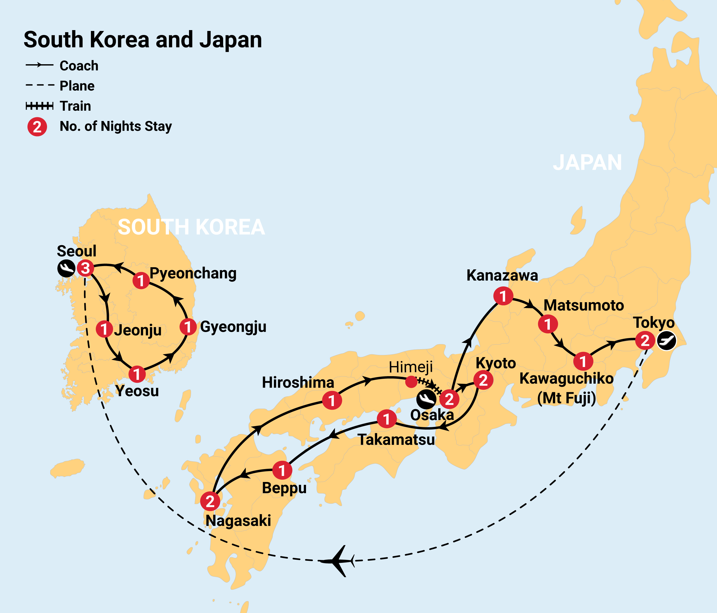 - Fully escorted by a dedicated tour leader in Japan and local guides in South Korea