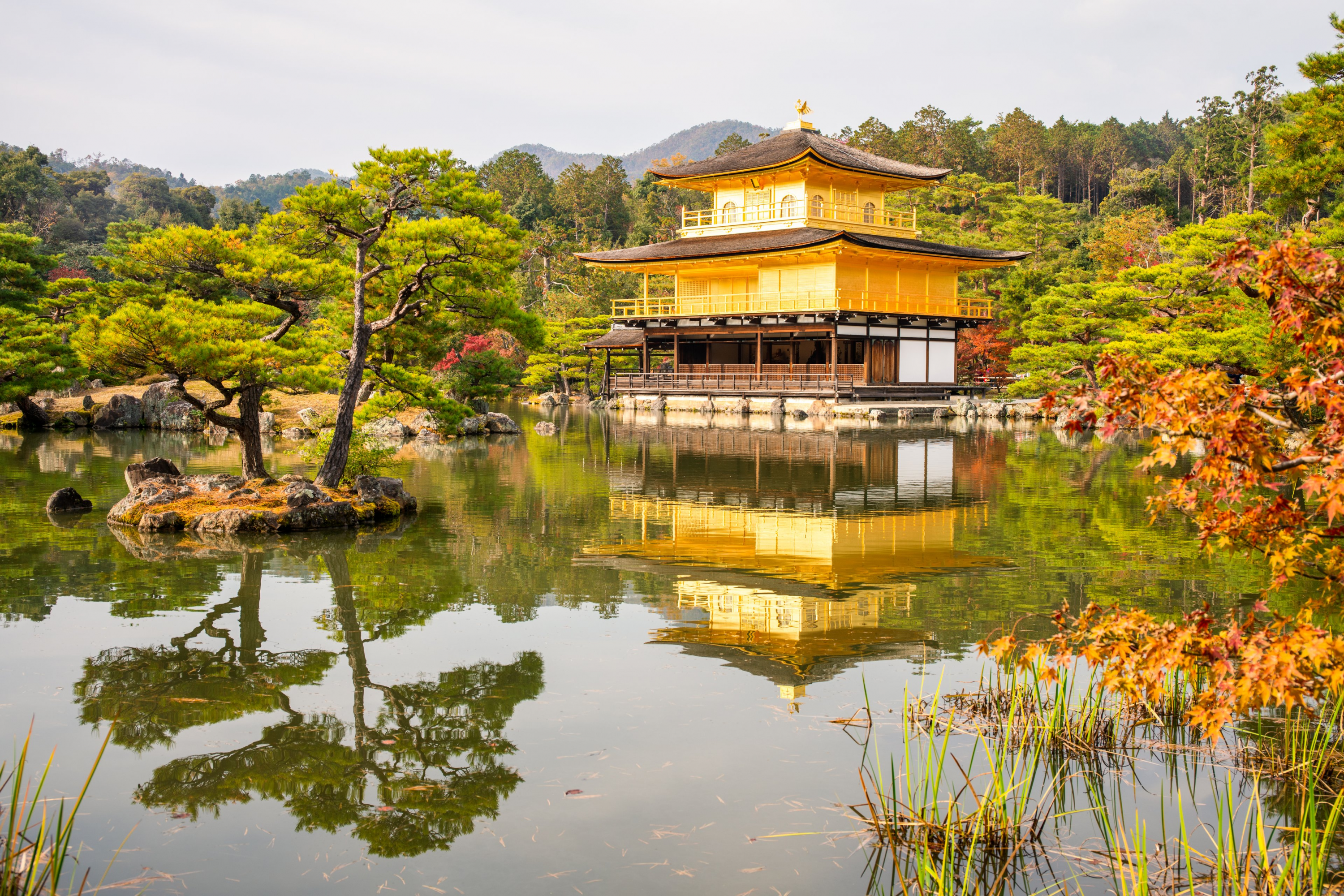 We'll continue onto some of Kyoto's most iconic sites, like Kinkaku-ji (Golden Pavilion). This is a Zen temple and UNESCO World Heritage Site, with two floors covered entirely in thin layers of pure gold, set within a beautiful classical Zen garden.