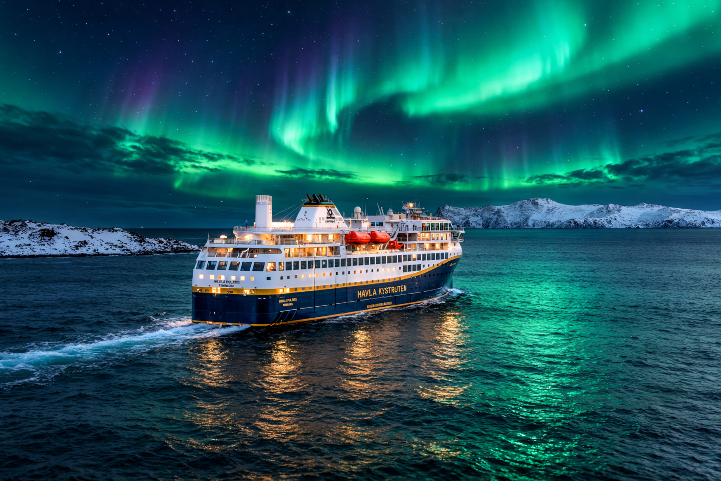 The next port of call is Vardø, home to the historic Vardøhus Fortress, a star-shaped stronghold that has guarded Norway's northeastern frontier for centuries. As night falls, keep watch for the elusive Northern Lights, which frequently illuminate the Arctic skies during the winter months.