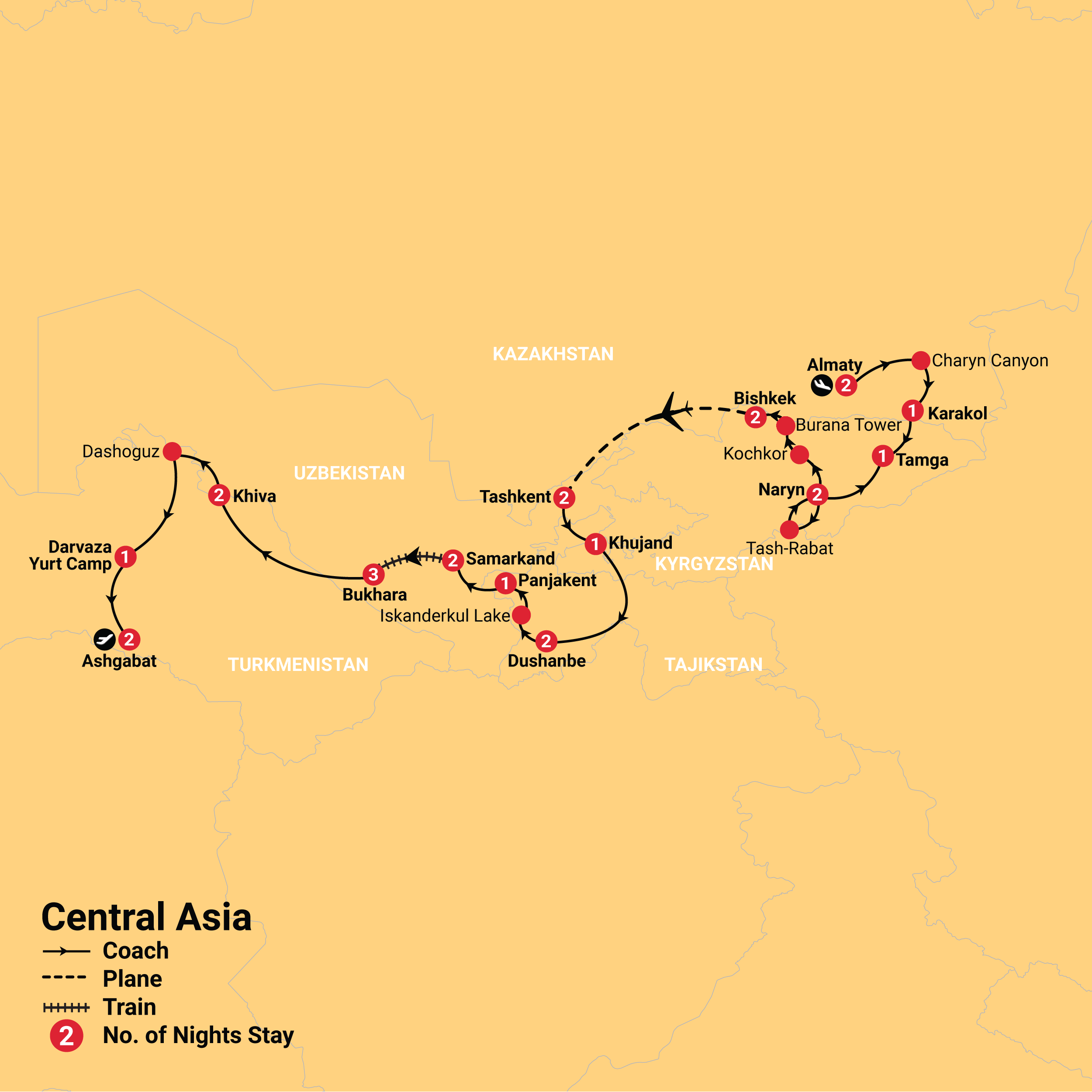Due to local regulations in Turkmenistan, a maximum of one night post-tour accommodation is available in Ashgabat. Arranging your own accommodation is prohibited, you must have all arrangements booked with Inspiring Vacations to avoid denied entry.
