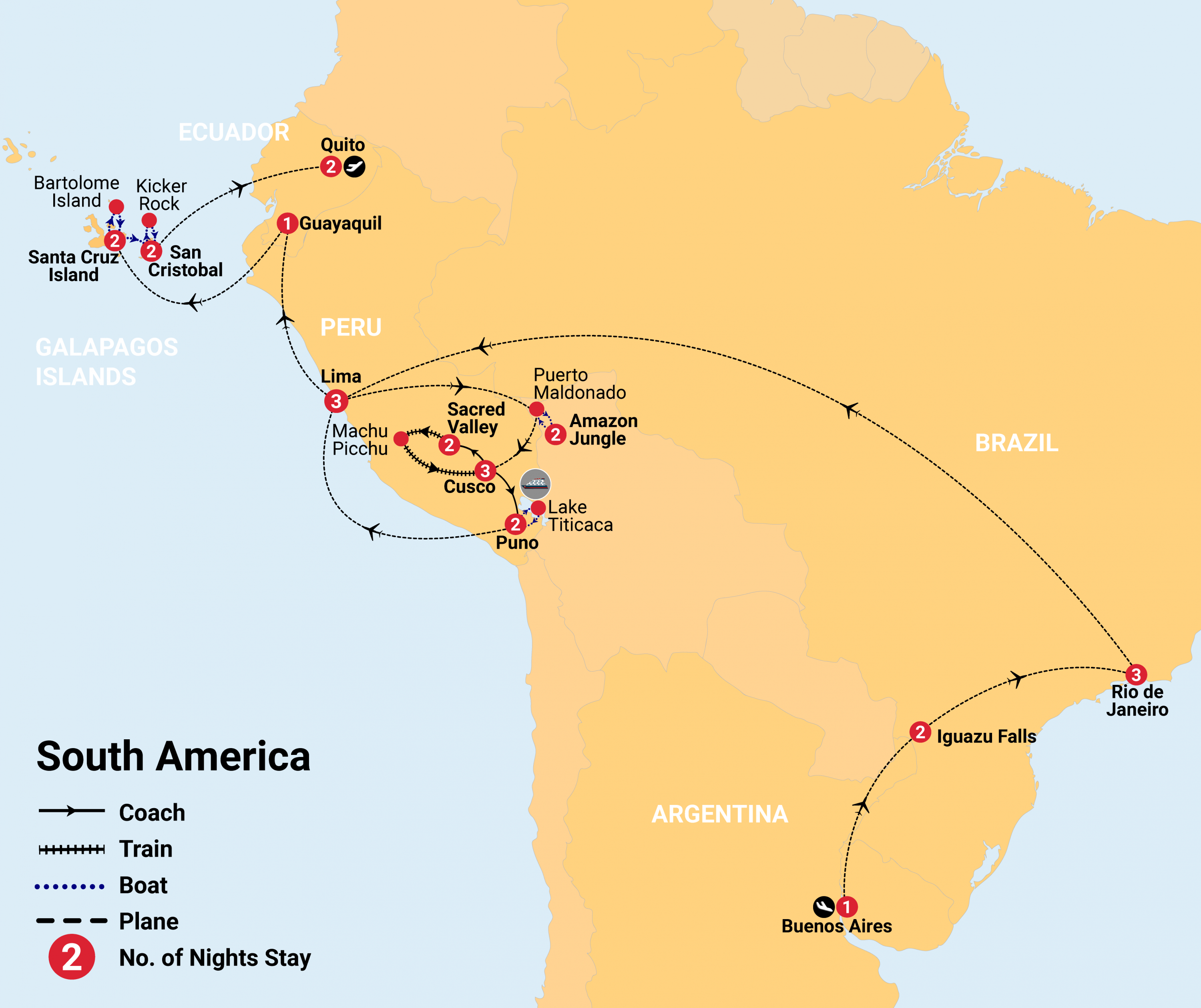 - Guided tours of all major cities including Buenos Aires, Rio de Janeiro and Lima