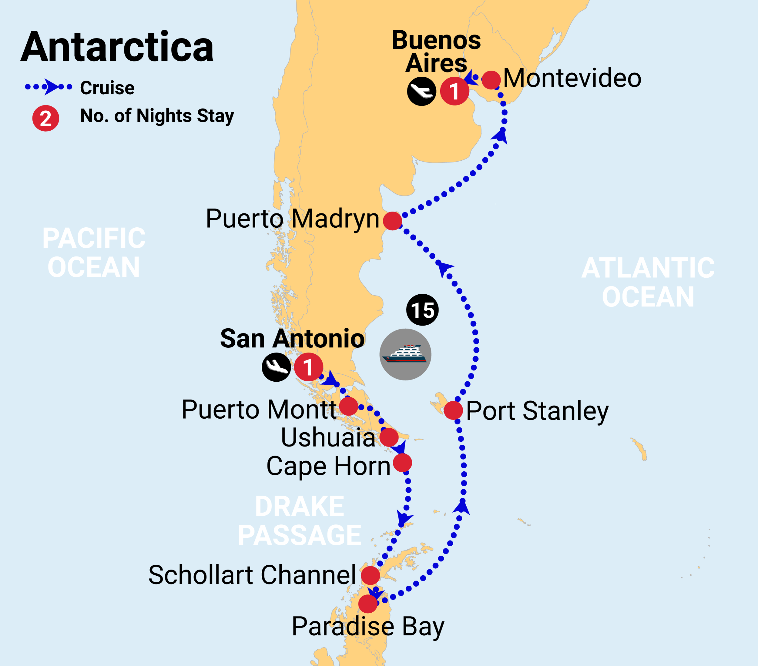 Day 2 - Fly Stay Cruise - 19 Day Beyond the Horizon: Patagonia, Falklands & Antarctic Cruise - 1 night pre stay in San Antonio