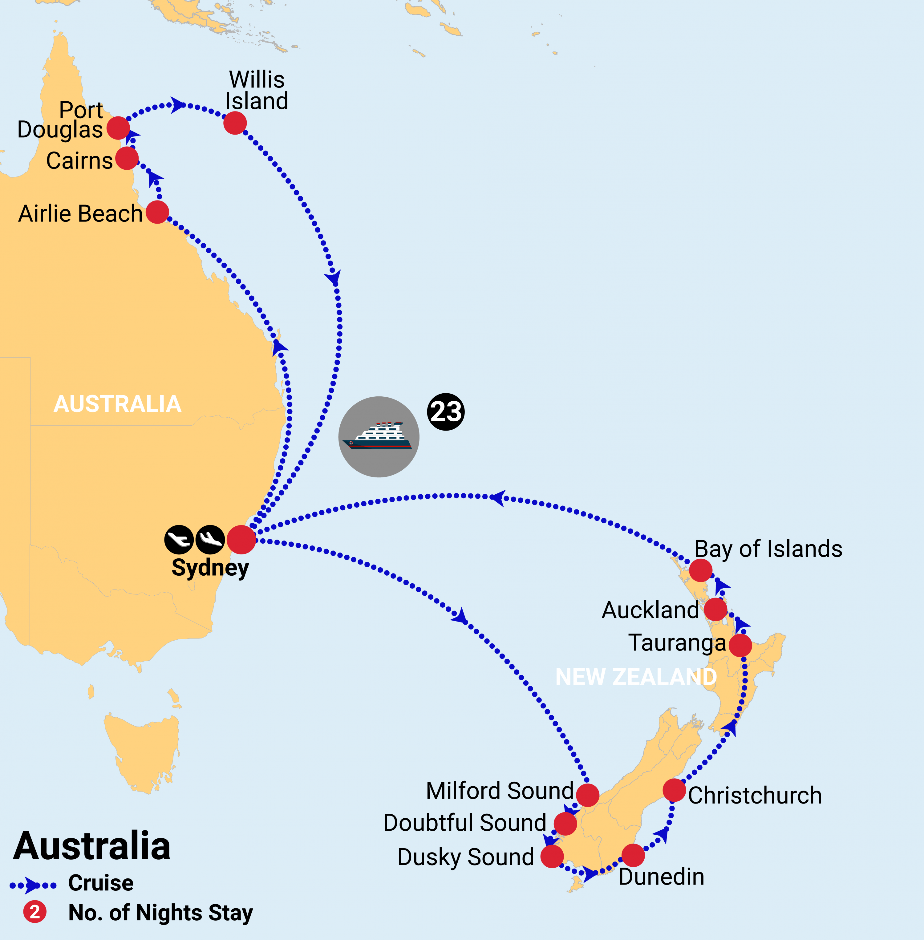 - 1-night pre-cruise stay in Sydney (including breakfast)