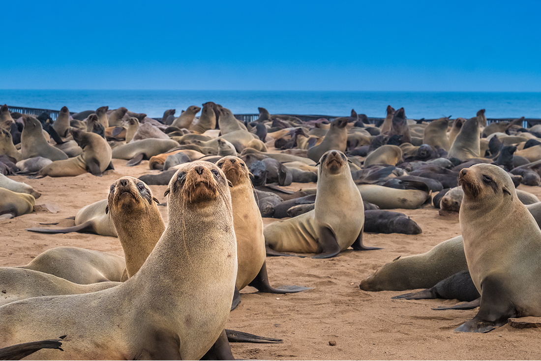 Continue to the town of Swakopmund. Be dazzled by the sight, sound and smell of thousands of olive-coloured seals on the shores of Cape Cross while you're travelling up the Atlantic Coast. You'll be able to stop along the way to access an ATM and market if you need some supplies.