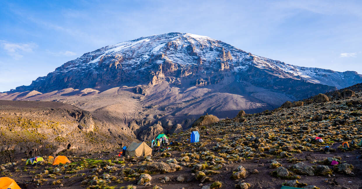 Along the way, we'll have views of the Eastern ice fields on the crater rim of Kibo, the highest of the three volcanoes which form the mountain. We'll leave the main trail and strike out across the heathland on a smaller path towards the jagged peaks of Mawenzi, the second of Kilimanjaro's volcanoes. Although today is a fairly short day of walking it's essential as part of the acclimatisation process, helping our bodies to prepare for the higher altitudes.