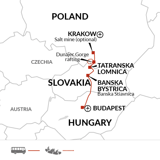 There is a lot to see and do in Krakow; if you can spare the time, we suggest arriving a day early to make the most of this fascinating city (especially if you plan to take the optional excursion to Auschwitz or Wieliczka Salt Mine tomorrow). Alternatively, you could consider combining this holiday with our Budapest to Prague Adventure (trip code: CZ) to make a two-week adventure through Eastern Europe.