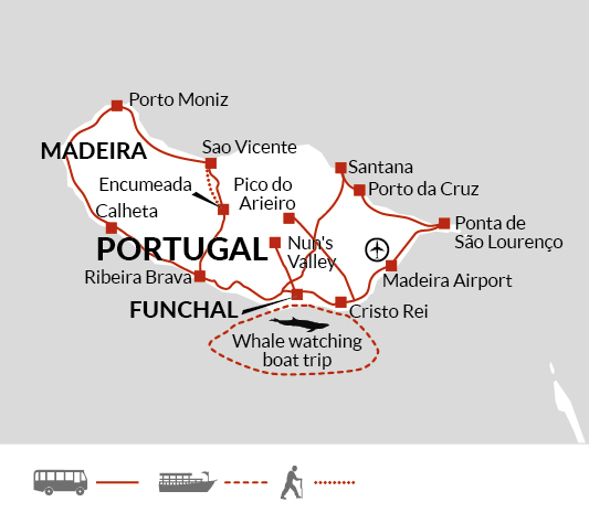 For those arriving in time, our tour leader plans to meet you in the hotel reception at 7pm for a welcome meeting and for those that wish, there is the chance to go out for dinner. There are no other activities planned today, so you're free to arrive in Funchal at any time. If you'd like an airport transfer today, you'll need to arrive into Madeira International Airport (FNC), which is a 25-minute drive from our hotel. Should you miss the welcome meeting, your Tour Leader will inform you of any essential information as soon as you catch up.