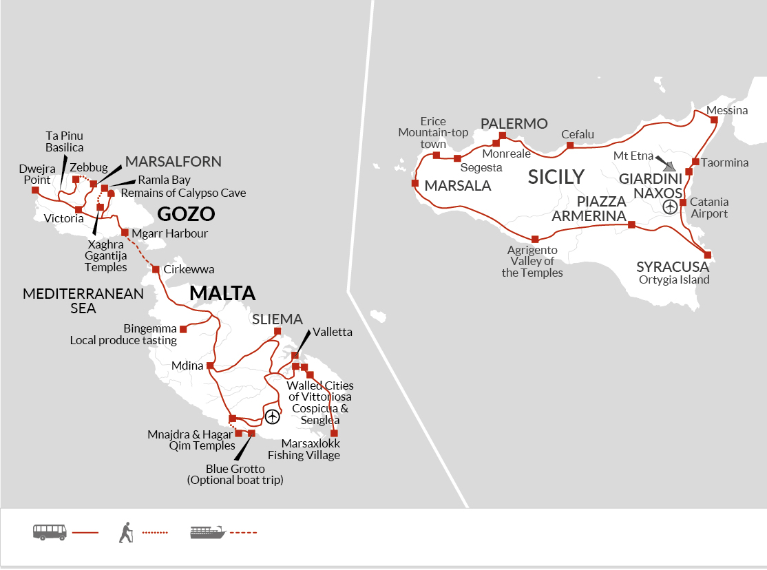 Please note that this trip combines two of our tours, Malta & Gozo Discovery and Classic Sicily. Not everybody will continue with us to Sicily and there will be new members joining us for the latter half of our trip. We'll meet our new group members and tour leader tomorrow evening.