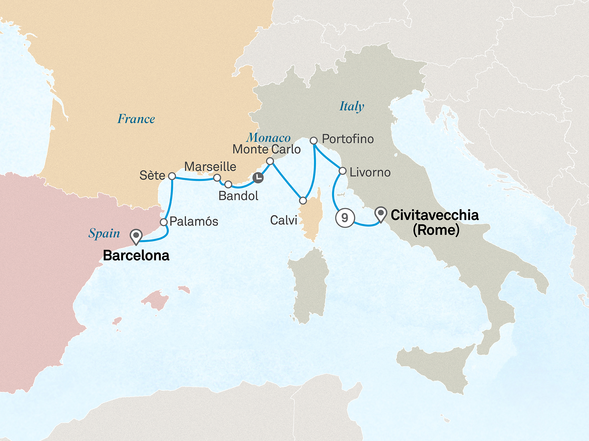 Set sail early October on an exquisite Mediterranean Signature Yacht Cruise, beginning in the Eternal City of Rome where ancient history meets vibrant modern life. Sail to iconic coastal gems, from the charming town of Portofino to the historic seaside ports of Corsica and Provence, with leisurely overnight stays in the cultural hub of Marseille and the lively city of Barcelona.