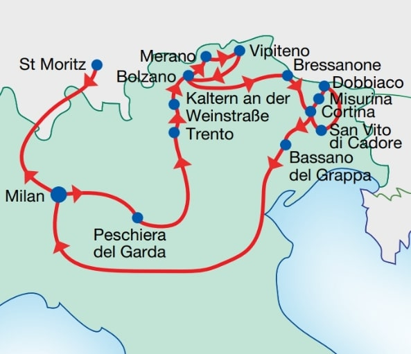 Embark on a stunning 9-day journey through northern Italy and the Swiss Alps, starting in Milan with a scenic ride aboard the famous Bernina Express through breathtaking alpine landscapes. Discover the elegance of Milan on a guided walking tour before venturing through charming lakeside towns like Peschiera del Garda, the wine-rich region of Kaltern, and the historic streets of Trento and Bolzano. Explore the heart of the Dolomites with visits to crystal-clear lakes like Braies and Misurina, picture-perfect villages like Merano and Vipiteno, and the stylish resort town of Cortina d’Ampezzo. Enjoy local flavors, mountain panoramas, medieval castles, and cultural gems before returning to Milan for a fond farewell.