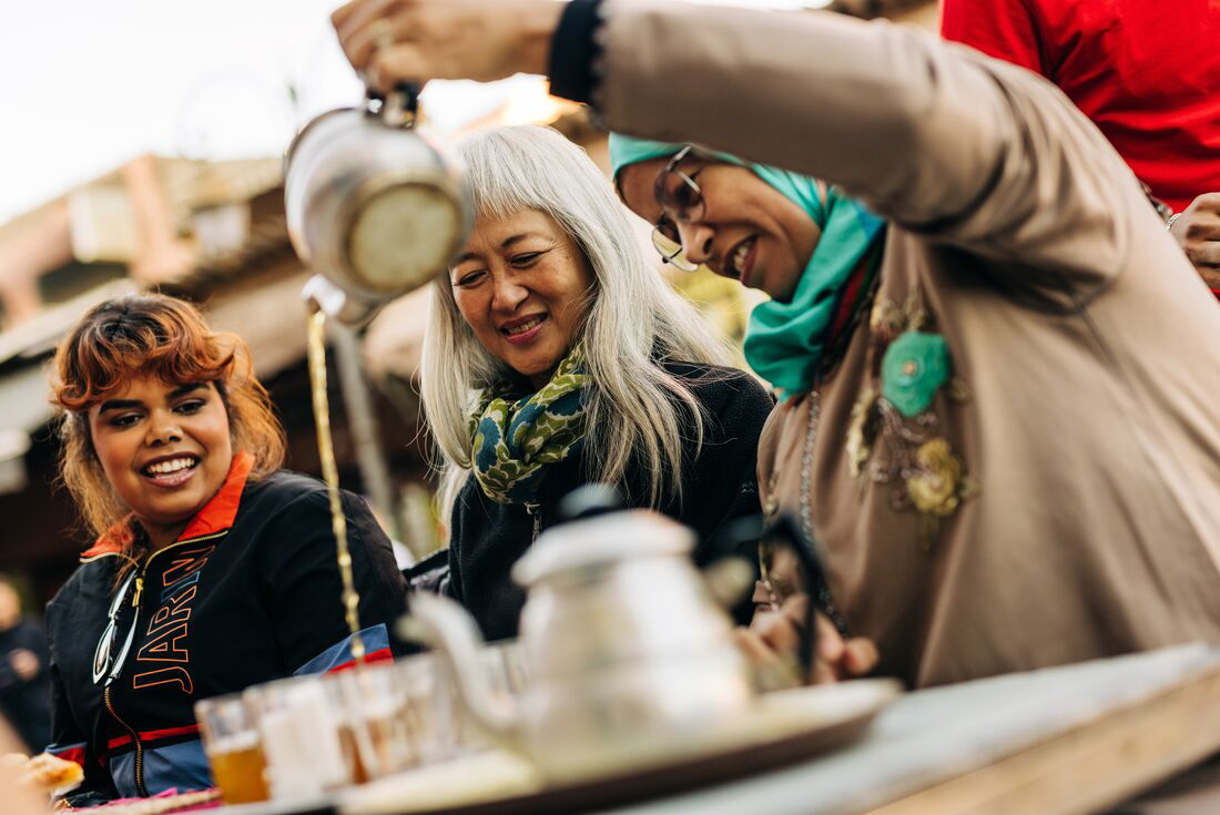 Today, you’ll head to your final destination – Marrakech. On the way, stop by a women's cooperative, where they produce locally grown argan oil. A product that’s endemic to Morocco and used for both culinary and cosmetic purposes, you’ll see the trees that produce the argan oil and learn the process of how the workers extract it. Learn about how it’s used and all the benefits before continuing to Marrakech. When you arrive, a local guide will take you on an orientation walk and tasting trail through the medina. Visit a locally owned coffee shop for an insight into how this cultural practice uses hot sand to brew a unique, spiced coffee. This evening, maybe join the crowds for dinner at the famous Djemaa el-Fna – one of the largest public spaces in the world and unique to Marrakech. When night falls on this square, it transforms into a hive of activity, with henna painters, performers and storytellers sharing the square with a street food bazaar (where you can try snail soup)!