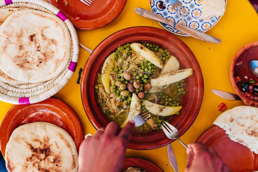 Your food adventure across Morocco comes to an end this morning. If you’re extending your stay, maybe stroll through the tropical gardens of the French painter Jacques Majorelle or return to the medina. The Saadian tombs are another recently uncovered gem of the medina. Be sure to take a break from the bustle to sip on tea or eat a tagine, filled with the quintessential flavours of Morocco.