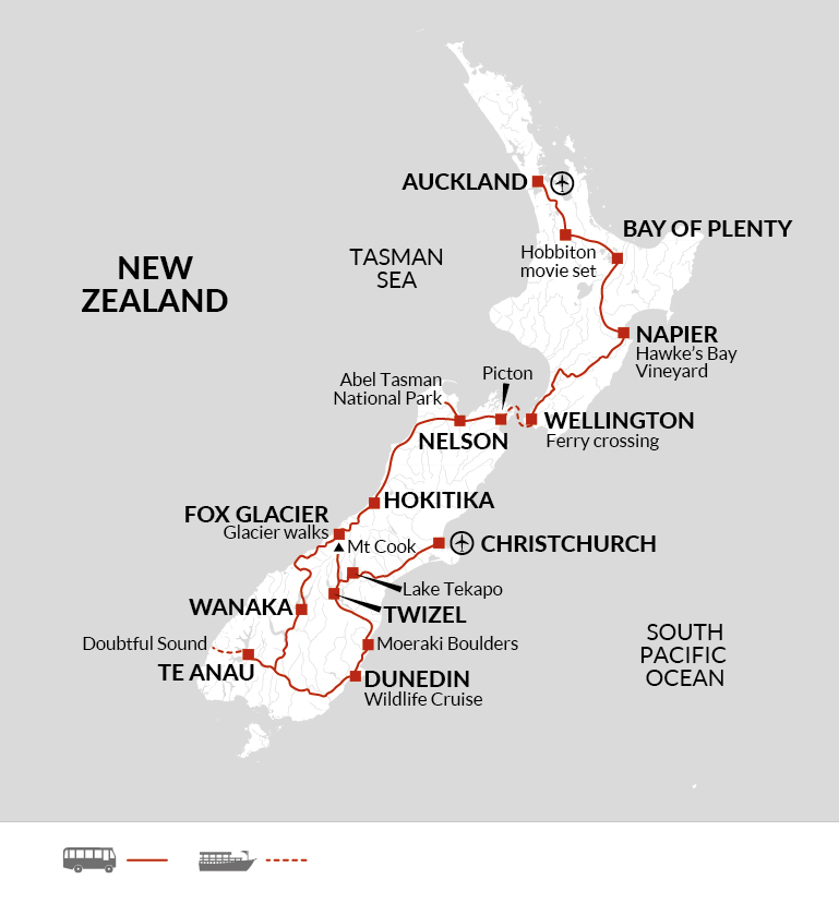For those arriving in time today, our tour leader plans to meet you in the hotel reception at 6pm for a welcome meeting. There are no activities planned today, so you're free to arrive in Auckland at any time. We don't provide airport transfers on this tour, but you can find information on how to reach your hotel in the final documentation.