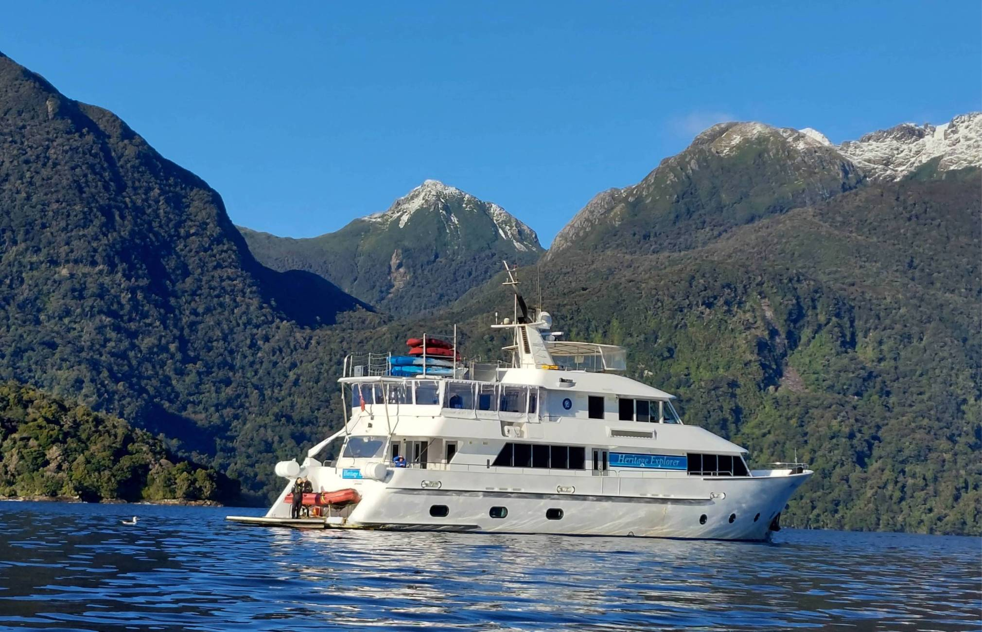 Experience the primordial majesty of Fiordland’s Northern Fiords where clouds scud the ragged peaks of glacier-cleaved mountains streaked with waterfalls as we explore Milford Sound and the more remote Bligh, George, Caswell, Nancy, Thompson and Doubtful Sounds, accessible only by expedition ship, on this 7-day voyage aboard 18-guest expedition yacht Heritage Explorer.