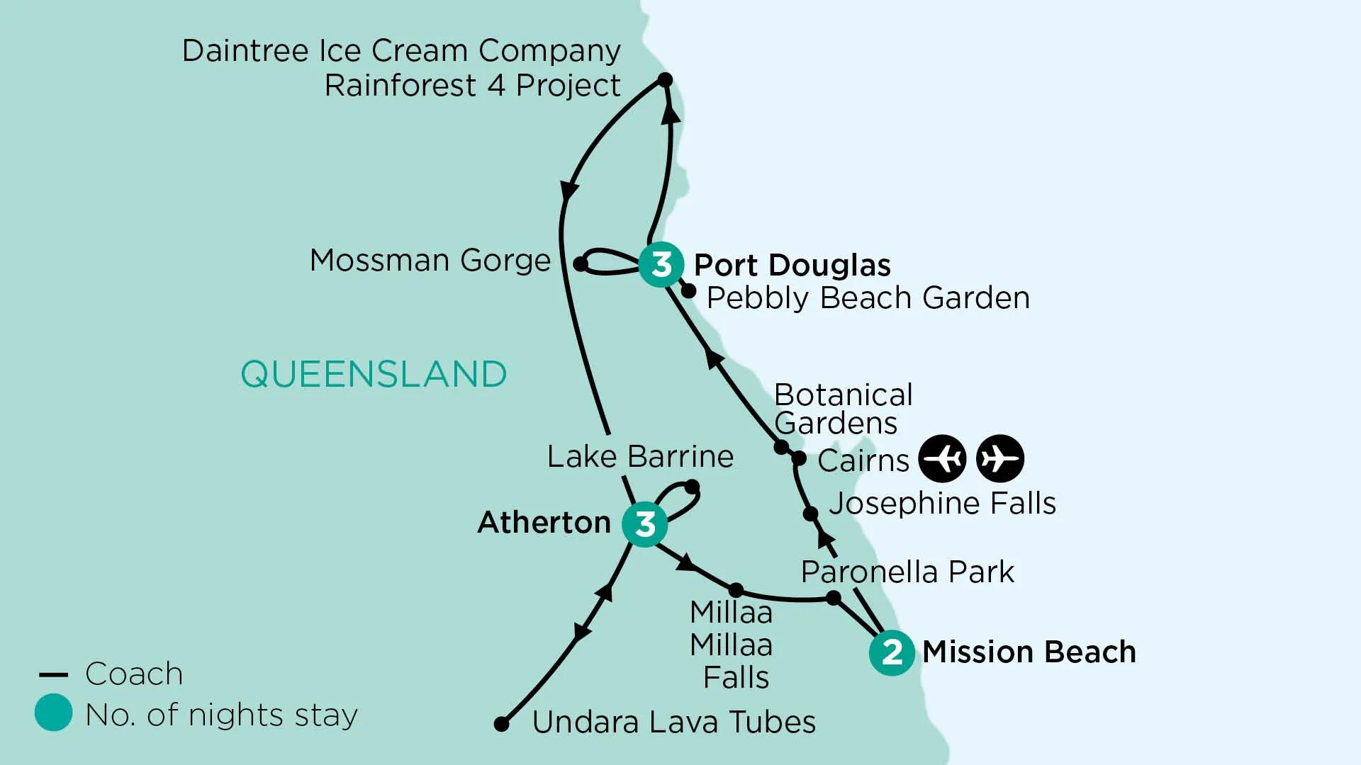 Traverse the tropics of Queensland. Over nine days, we take in some of the region’s most remarkable sights, including Daintree National Park, the Undara Lava Tubes, and the Atherton Tablelands. Gain an appreciation for the region’s innovative producers during visits to local farms and plantations. Spend time at the Botanical Ark, home to a vast collection of rainforest plants. And join daily walks across diverse terrain, from lush rainforest to the beach and bush.