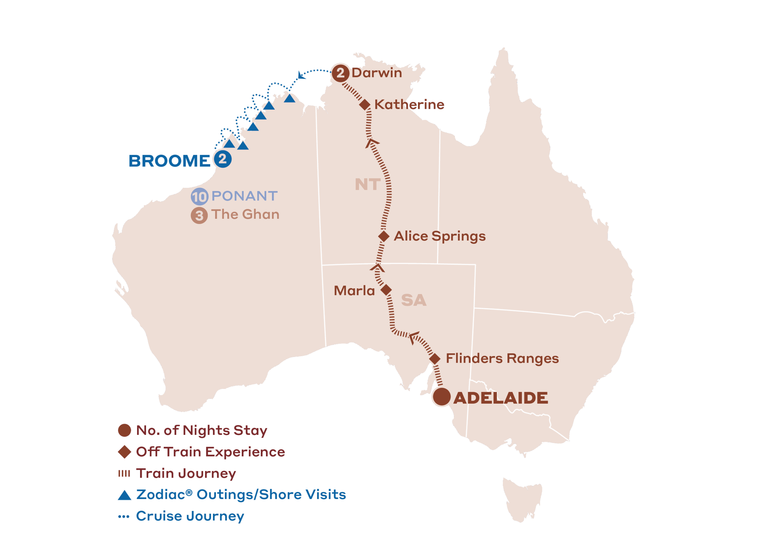 Take in any last-minute sights in and around Broome as your rail and sail adventure concludes and you leave with memories to last a lifetime. (B)