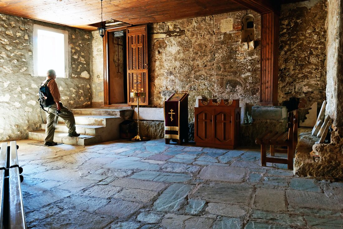 Today join a local guide to explore the central part of the Peloponnese peninsula and Lousios Valley. Walk deep into the valley where you’ll have an Exclusive Experience at the working monastery of Prodromos – an incredible wood and clay structure built into a rock face. Learn about the monks’ lives as they show you around before sitting together for coffee and Greek delight. Then, see the splendid 14th-century frescoes decorating the rock walls inside the chapel. After, continue your hike to Ancient Gortys, the remains of a temple dedicated to Asclepius, the Greek God of Medicine, which dates back more than two thousand years and sits on the banks of Lousios river. With the hike complete, stop at a traditional village of the Arcadia region for lunch at a restaurant which is a favourite with locals, before returning to Dimitsana for a free afternoon.