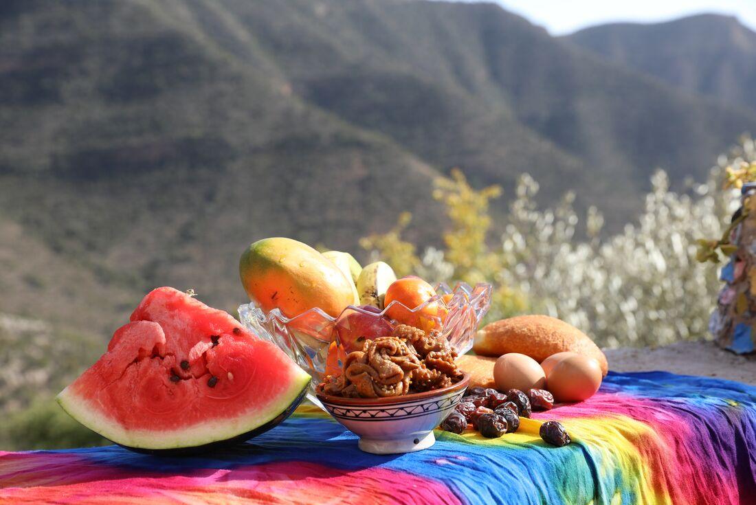 Embark on today’s trek early this morning, heading from Imlil through the Tiziane Valley and immersing yourself in the natural beauty and cultural richness of the High Atlas Mountains. This is more challenging hike with a couple of ascents, but the surrounding scenery is well worth the effort. You’ll ascend to the highpoint of this tour, the Tizi N'Tamatert Pass (2279 m) where you'll enjoy several panoramic vistas of the nearby Tachdirt Valley, surrounding mountains, and the trail you've hiked up. Take a break and enjoy a picnic with view. Carry on through small villages and rocky landscapes before returning to Imlil for another home-cooked lunch and a bread making demonstration in a local’s home. This afternoon, you’re free to relax and take in the scenic views of the surrounding mountains.