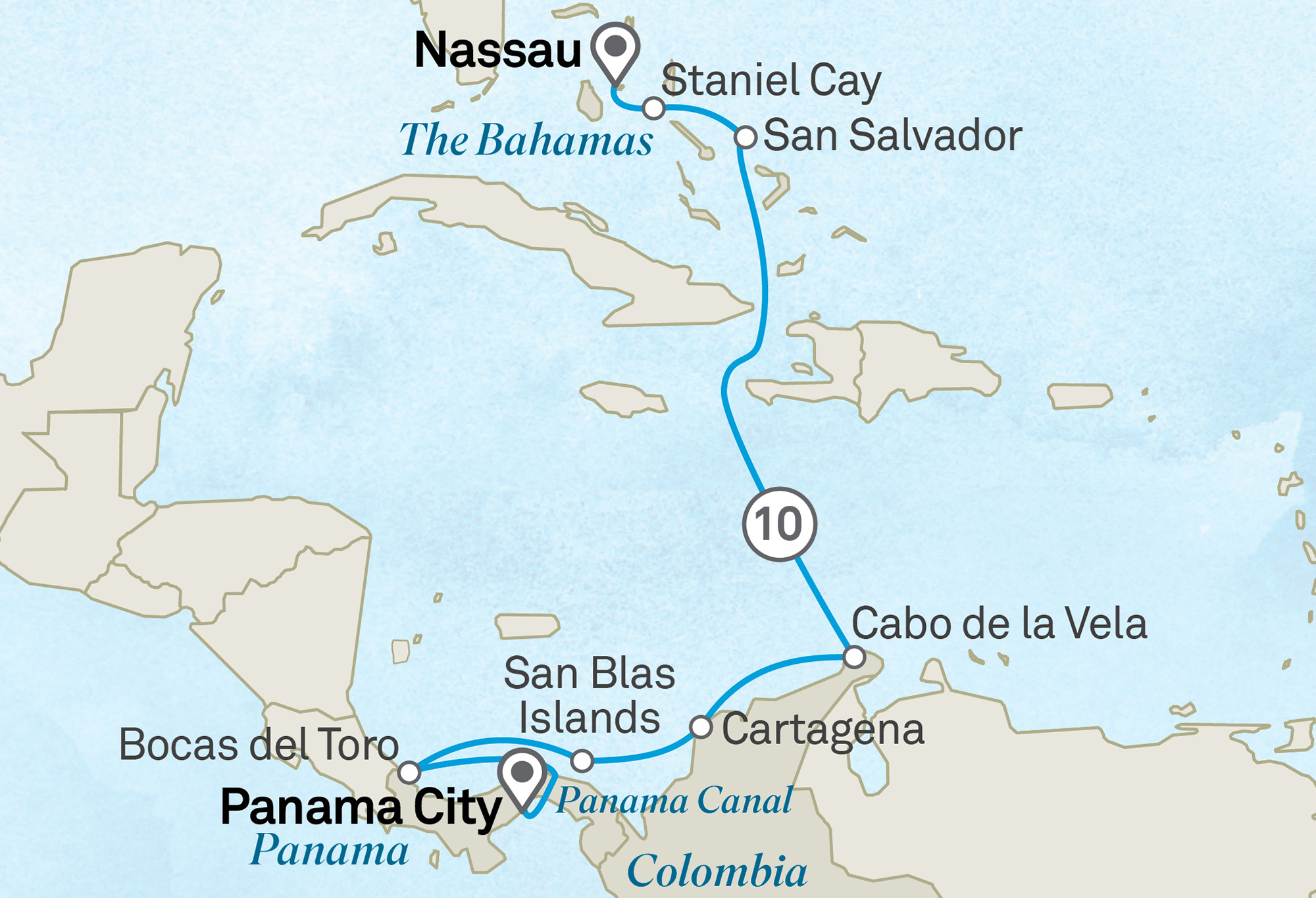 The Bahamas is a destination on travel wish lists across the globe. It’s the ultimate tropical escape where sugar-white sand is lapped by unbelievably pristine waters and towns are as colourful and sunny as their people’s disposition. This 10-night Discovery Voyage will take you to some of the most idyllic islands in the Bahamas, where paradisiacal landscapes are complemented by rich histories, intriguing cultures and historic architecture. From exploring the colonial town and former pirate haven Nassau to visiting the famous beach where pigs swim to meeting Cabo de La Vela’s indigenous Wayuu people, remarkable experiences await. On board your ultra-luxury Discovery Yacht, you'll end this spectacular voyage with a cruise along the Panama Canal, one of the world’s greatest engineering feats.