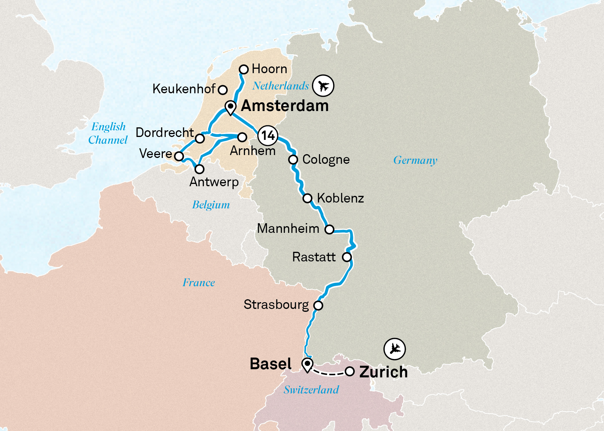 Experience the wonders of Europe’s most storied waterway in spring, cruising the length of the Rhine from Basel to Amsterdam. Then watch the Netherlands burst into bloom as you cruise along the country’s winding waterways.