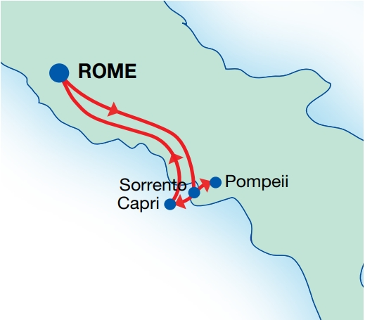 Experience Italy’s highlights from Rome to the Amalfi Coast. Explore Rome’s culinary delights and iconic Vatican treasures before heading south to the coastal beauty of Sorrento. Sail to Capri to see the Blue Grotto and Gardens of Augustus, then journey through history with a guided tour of Pompeii’s ancient ruins. A perfect blend of culture, cuisine, and coastal charm.