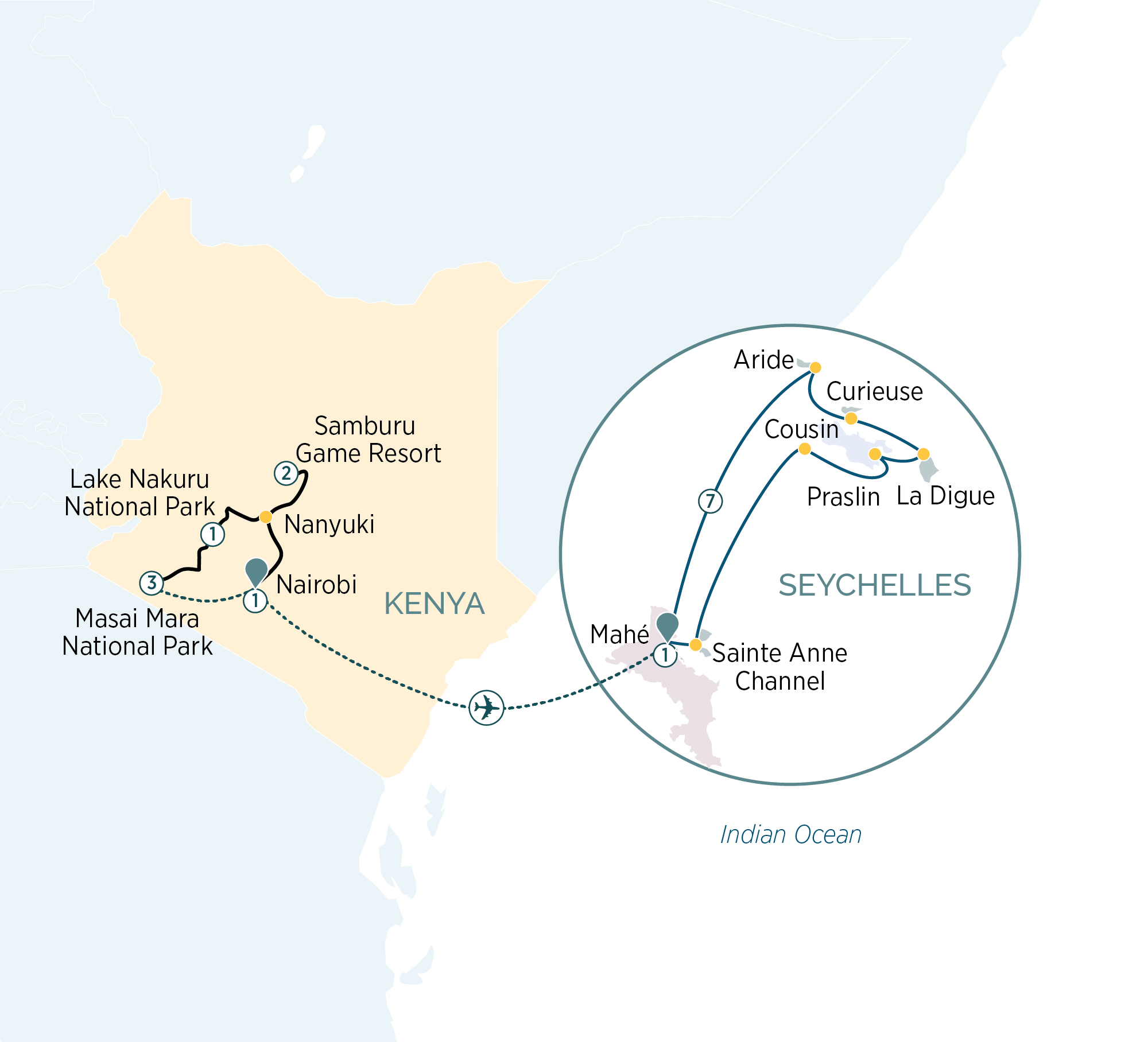 Welcome to the adventure of a lifetime! Spot Africa’s magnificent ‘Big Five’ on daily safari drives and immerse yourself in traditional Maasai culture amid Kenya’s renowned game reserves. Discover a tropical paradise of spellbinding natural beauty and endemic fauna and flora as you cruise the Indian Ocean and Seychelles Islands onboard our luxury yacht.