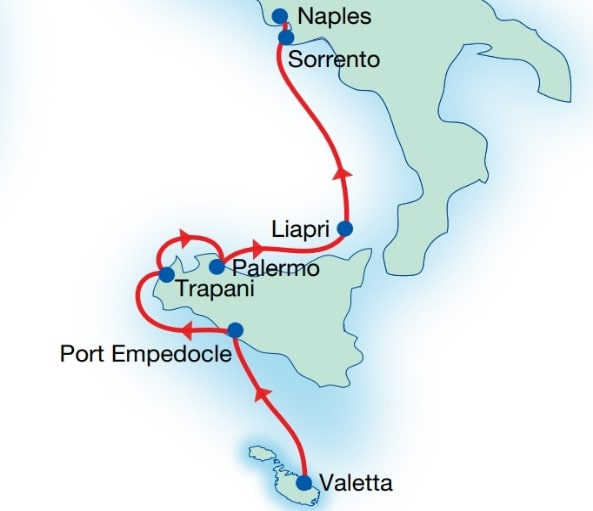 Embark on an 8-day cruise from Malta to Italy, starting in the captivating capital, Valletta. Your journey takes you to Agrigento, home to the UNESCO-listed Valley of the Temples. Explore the medieval charm of Erice with its narrow cobblestone streets. In Palermo, uncover the intriguing origins of the Mafia and savor Sicilian cuisine. Then, visit the Aeolian Island of Lipari, where azure waters meet rugged cliffs, before reaching Sorrento, adorned with fragrant lemon groves. Don’t miss tasting the renowned limoncello that captures Sorrento’s citrus essence.