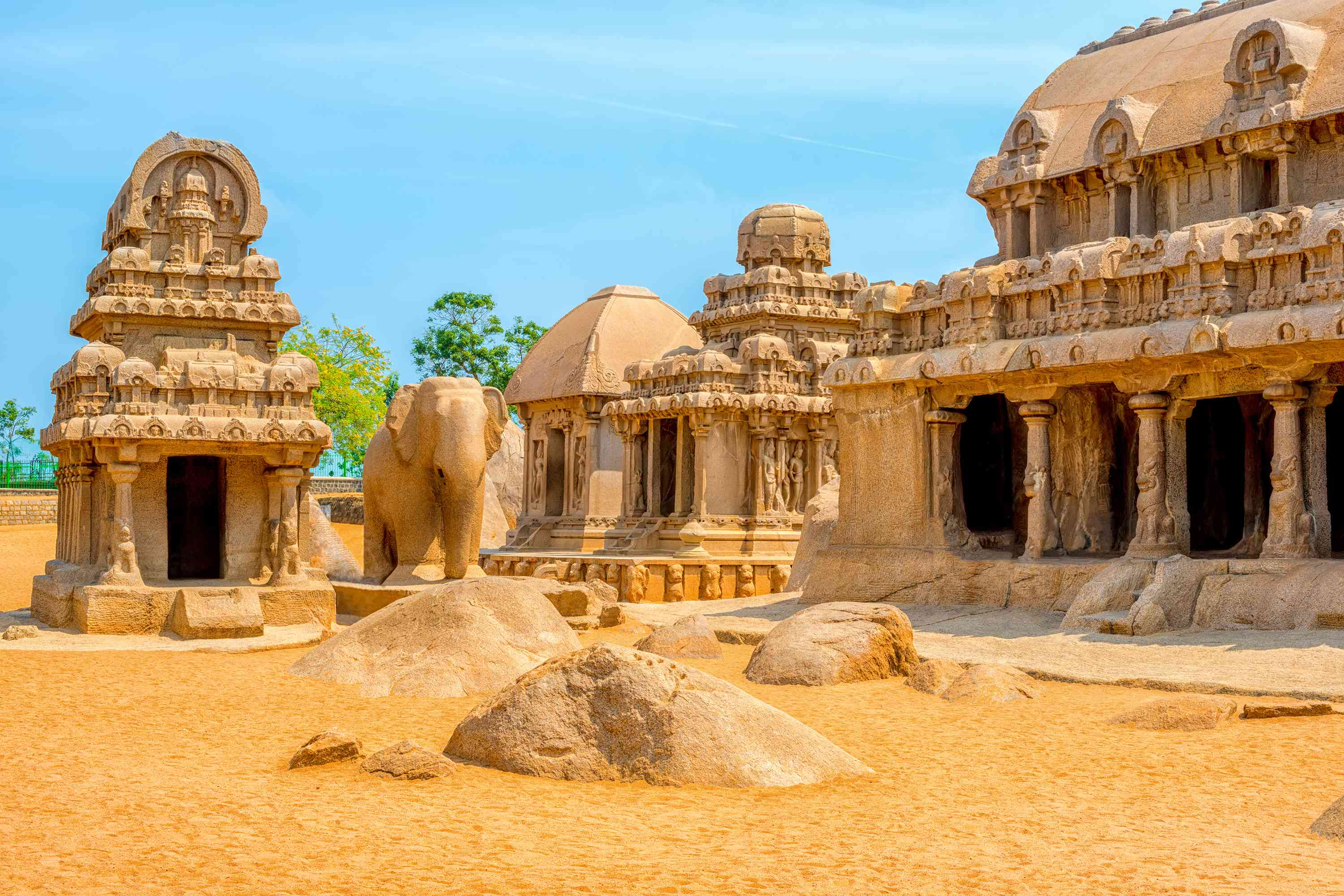 Next, we'll explore Mahabalipuram's renowned sites, including Five Rathas Temples and Shore Temple, showcasing stunning rock-cut architecture. Then, we will discover the Krishna Mandapam and Arjuna's Penance stone carvings, portraying tales of Hindu mythology. Our final stop is the UNESCO-listed Butterball, an awe-inspiring natural rock formation that has defied gravity for centuries.