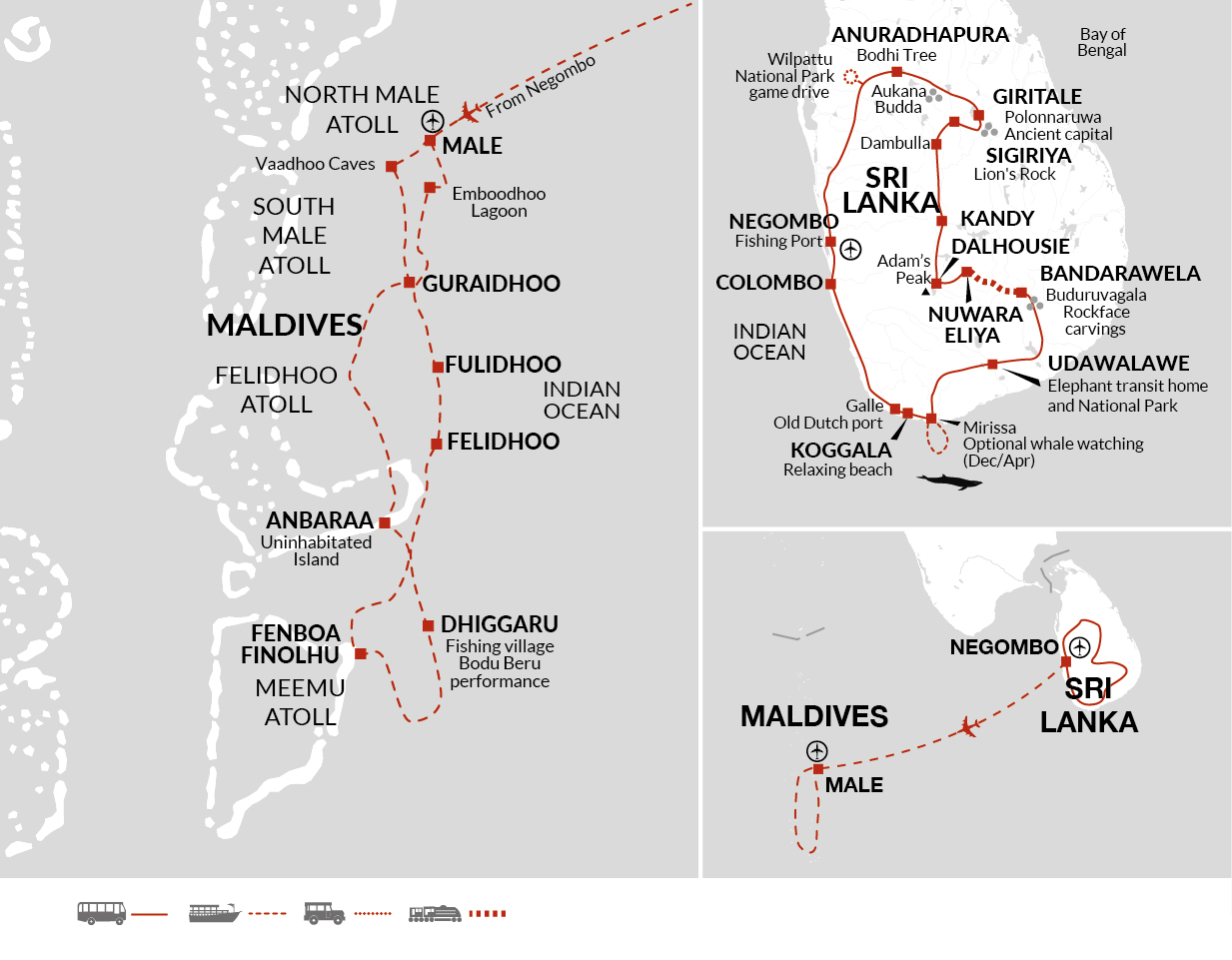 Explore the spiritual and scenic delights of Sri Lanka before discovering paradise in the Maldives. This three-week adventure combines the highlights of the Pearl of the Indian Ocean - from Buddhist temples to ancient cities and wild national parks - with a week cruising the crystal waters of the Maldives.