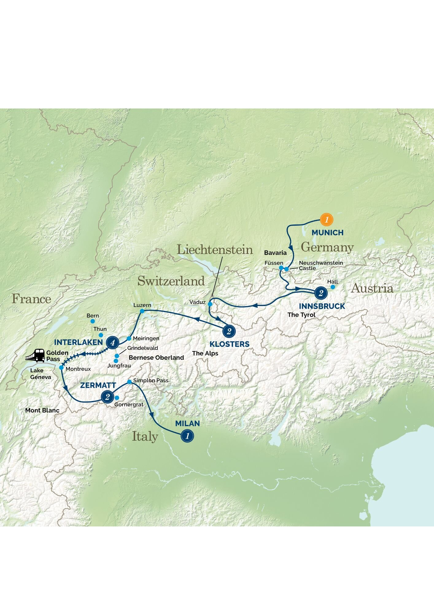 Take in Switzerland's mighty snow-covered mountains and lose yourself in a Bavarian 'fairytale' castle on our longest Christmas Market tour yet. The Swiss Alpine Tour celebrates the beauty and majesty of the Swiss Alps at the most festive time of year! Take a cable car ride up the Schilthorn for a unique ‘Schilthorn Brunch’ and a suspended cliff-clinging walk. Experience the magic of the glorious festive Christmas Markets of Innsbruck, Montreux, and Bern, enjoy mountain funicular rides and the scenic Golden Pass Panoramic train whilst staying in chic ski resorts such as Klosters and Zermatt.