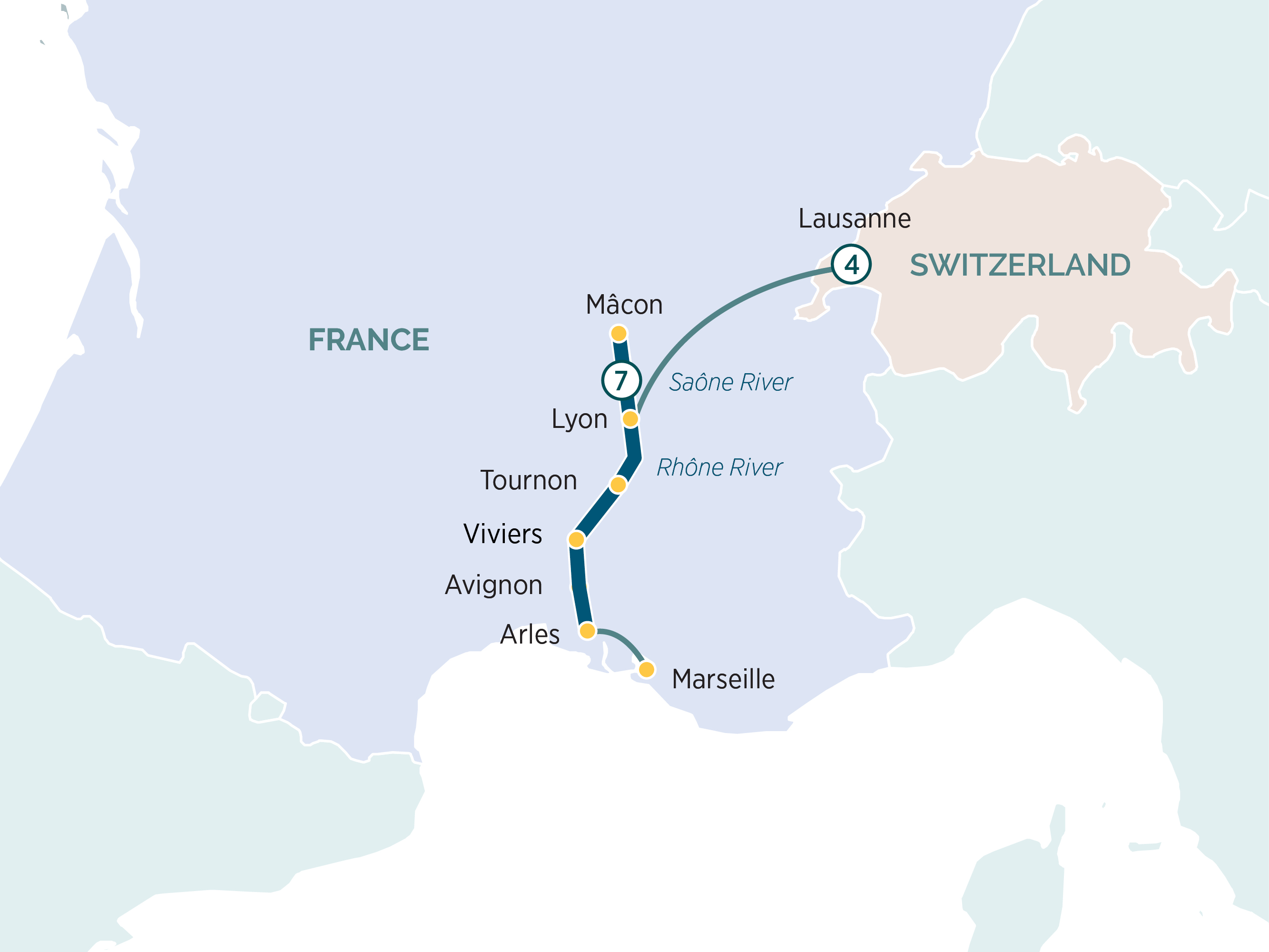 The Rhône and Saône rivers meander through the picturesque south of France, where you’ll discover picture-perfect villages, palaces and Roman ruins, and delicious Provençal cuisine.