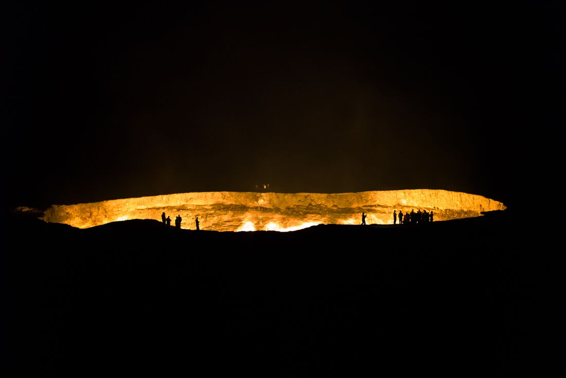 A long travel day today. This morning, say goodbye to Uzbekistan and cross the border into Turkmenistan. After border formalities, you’ll meet your new leader and head on to Dashoguz. When you arrive, visit a local bazaar and stretch your legs. Then, switch into 4WDs and drive on to Derweze – this village in the middle of the Karakum Desert is famous for ‘The Gates of Hell’ – this gas crater is an astounding 70-m-wide, 30-m-deep pit permanently aflame and formally known as the Darvaza Crater. Soviet oil prospectors started drilling in 1971 expecting to find oil, and the ground collapsed. Worried about the gas released into the air, they deliberately set the crater on fire to burn off the excess, expecting it to last a few weeks. As you’ll see today, they were wrong, and the crater has been burning ever since. When you arrive, take a walk around the crater and learn about the flora and fauna of the desert. Watch the sunset over the flames from your nearby yurt camp and enjoy a picnic dinner