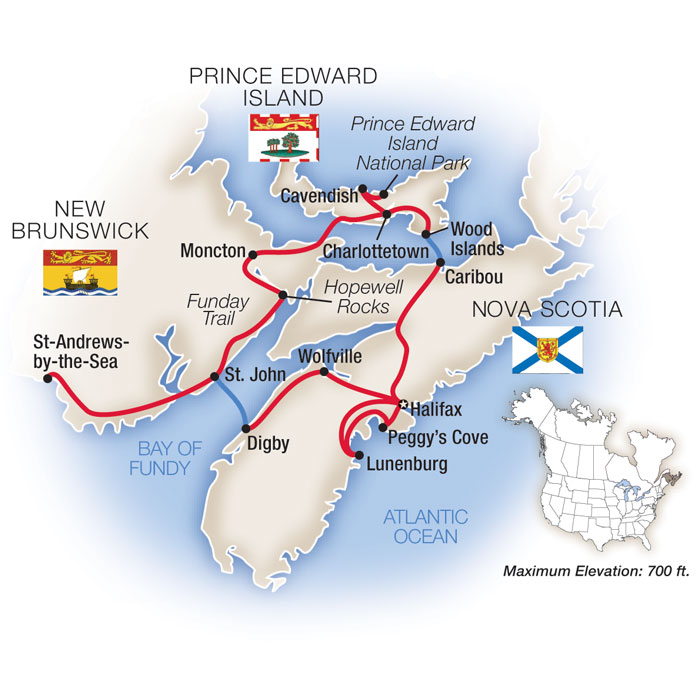 Lighthouses stand watch over the coastal landscapes and storybook villages of the Maritime Provinces, enticing you with a cultural mix of French, Irish, Scottish, and English influences – Highland kilts, Celtic music, British towns, Acadian art... along with the legacies of Anne of Green Gables and Alexander Graham Bell, and traditions like a kitchen party, rug hooking, whale watching and oyster shucking... and culinary treats starring blueberries, lobsters, and planked salmon!