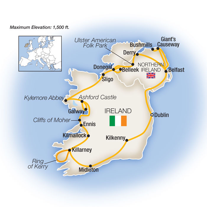 Immerse in the wonders of Irish culture... featuring stays at country estates, lakeside resorts and a historic city-center hotel on travels that take you to Dublin, Belfast, Giant's Causeway, Derry, Enniskillen, Donegal Town, Galway, Connemara, Sligo, Ennis, Killarney, and Kilkenny!