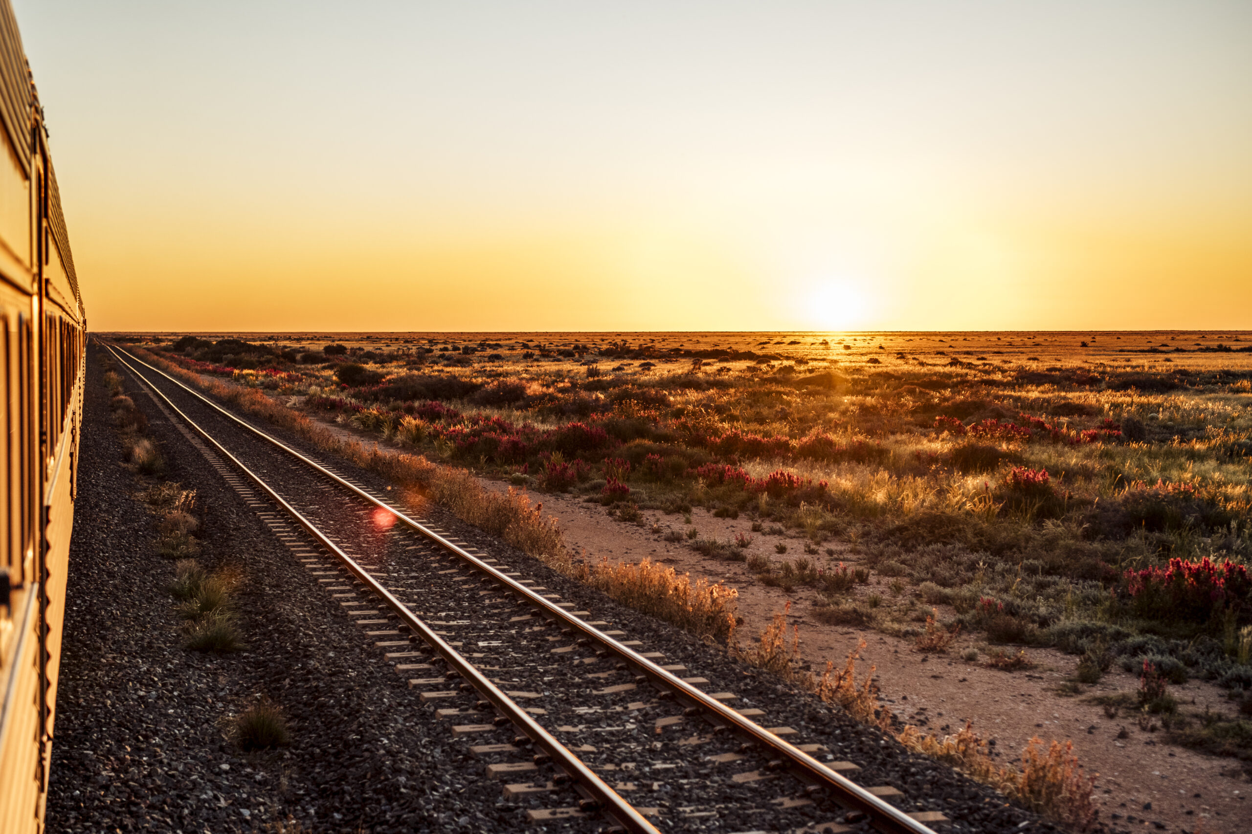 Today is all about the vast, unforgettable views of the Nullarbor Plain. You’ll journey across this legendary expanse on the world’s longest stretch of straight railway track, with endless horizons unfolding outside your window. Along the way, the train pauses at Cook – once a bustling railway town, now a near-ghost outpost with stories etched into its weathered buildings.