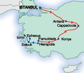 This small-group tour, limited to 28 participants, begins with a two-night stay and city tour in Istanbul before journeying to Ankara and Cappadocia. After exploring the natural wonders of Pamukkale, the tour continues to the ancient city of Ephesus and concludes in the vibrant city of Izmir. Throughout the trip, guests enjoy comfortable accommodations in 4-star hotels and the guidance of an experienced English-speaking guide.