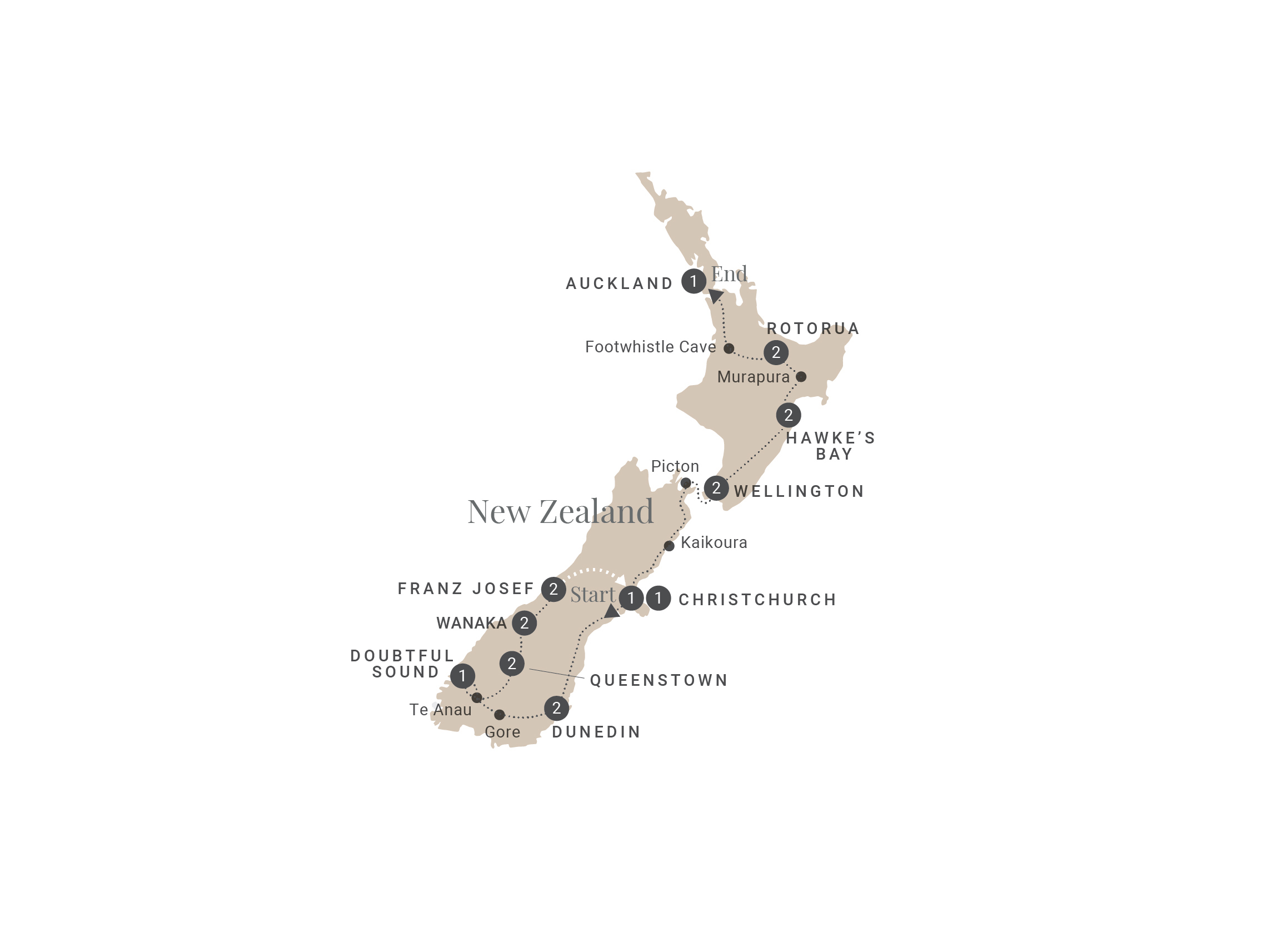 Start:Christchurch, New Zealand
