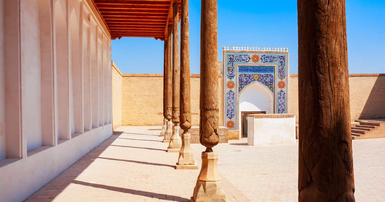 We continue our city tour in the old town of Bukhara. Our exploration starts with the Ark, a massive citadel that served as a fortress from the 5th century until its capture by the Russians in 1920. Today, the Ark houses several small museums dedicated to Bukhara's history. Bukhara was the site where two British soldiers were imprisoned during 'The Great Game,' a significant race for Imperial power between Victorian Britain and Tsarist Russia across Central Asia. Next, we visit the Bolo Khauz Mosque with its peaceful pond and facade before taking a short drive to the Samanid Mausoleum, an iconic example of early Islamic architecture and a pilgrimage site housing the tomb of the Samanid dynasty's founder.