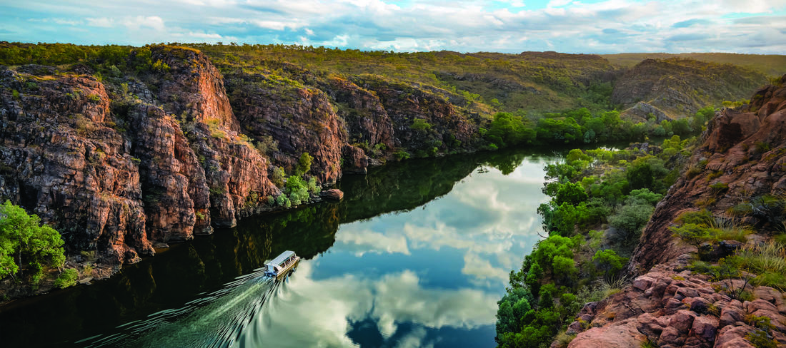 Your final day begins in the tropical north, where the landscape gives way to rocky escarpments and fast-flowing canyon streams. Here, you’ll experience one of the Top End’s greatest natural wonders on a cruise through the majestic Nitmiluk Gorge. As you glide along the water, your guide will share the cultural significance of this place to the Jawoyn people, weaving in stories that highlight their deep spiritual connection to the land.