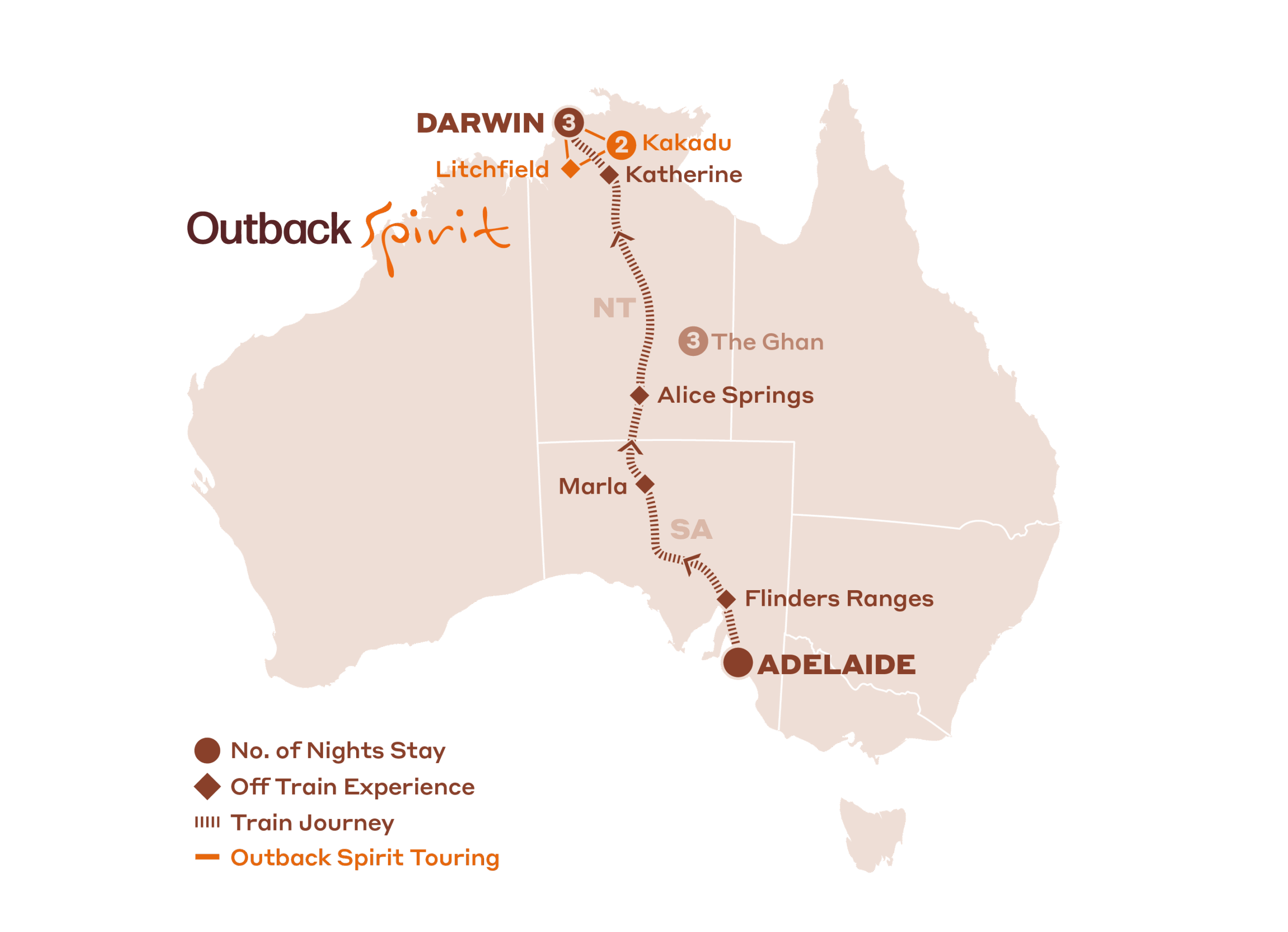 After dinner, return to the train and retire for the night as The Ghan continues its journey towards north. (B, D)