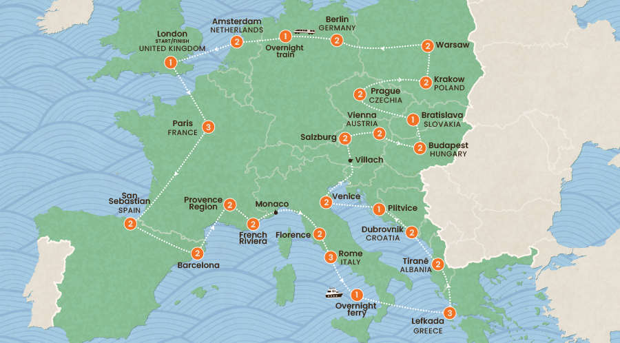 Find me… nibbling pintxos by the bay in San Sebastián, strolling Tirana’s colourful streets beneath communist-era mosaics, sampling smelly cheese in Provence and tossing coins into the Trevi Fountain between bites of gelato. This is our biggest Europe trip going.