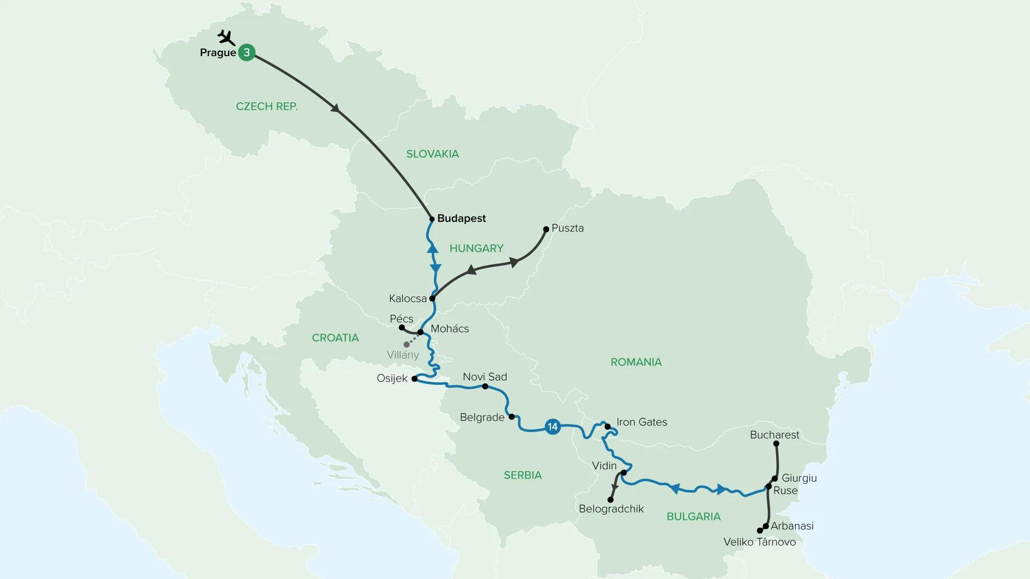 Begin your 18-day journey in Prague, where you'll explore the World Heritage-listed Old Town, Strahov Monastery, Charles Bridge, and the Astronomical Clock. Then, embark on a 14-night cruise through the Balkans, discovering the region’s rich history and vibrant culture. From dynamic cities like Belgrade and Bucharest to charming towns in Hungary and Bulgaria, enjoy an immersive journey through one of Europe’s most captivating regions.