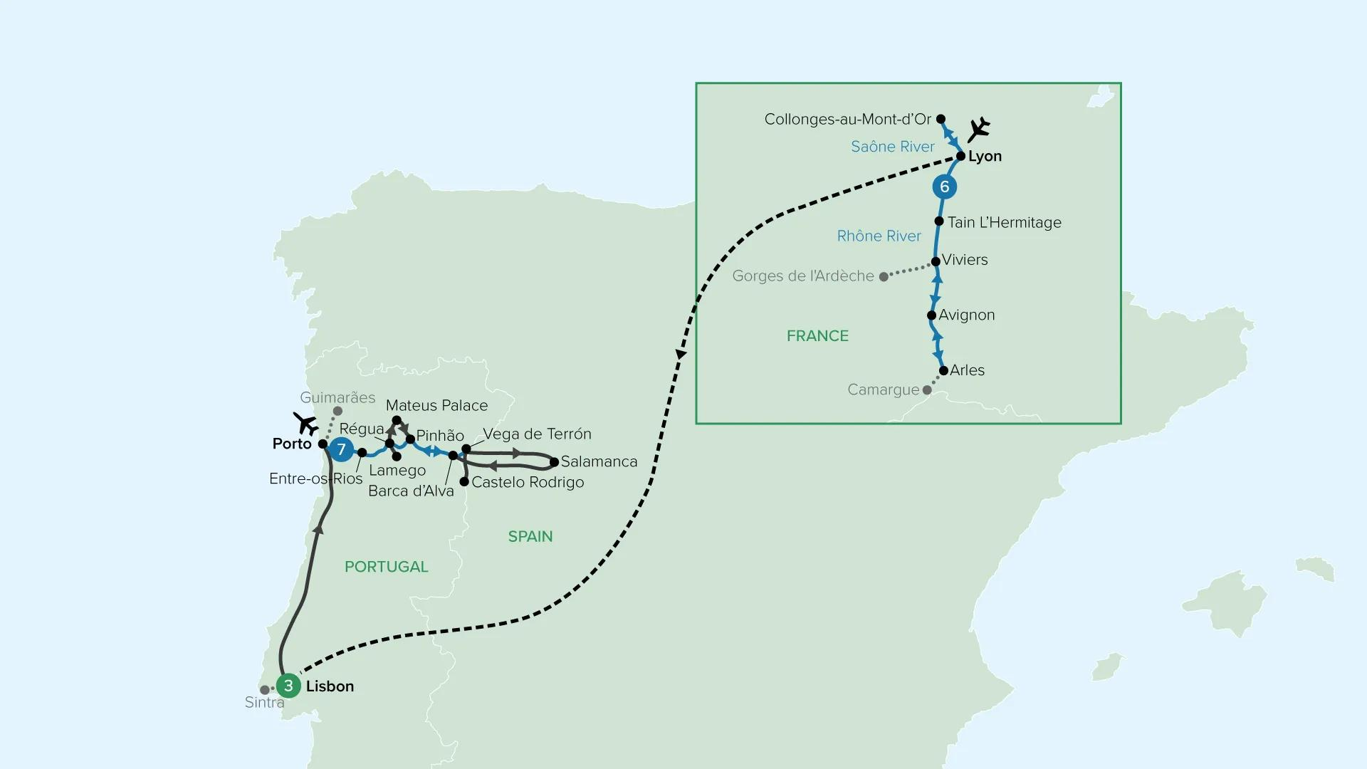 Board a river cruise along the Rhône and Douro on this 17-day journey through the heart of Portugal, Spain and France. Highlights include a night of fine dining at Paul Bocuse’s renowned L’Abbaye de Collonges, an authentic Portuguese quinta dinner in Pinhão, and a lively lunch in Salamanca accompanied by a traditional flamenco performance. Along the way, uncover rich cultural heritage, scenic landscapes and timeless towns.