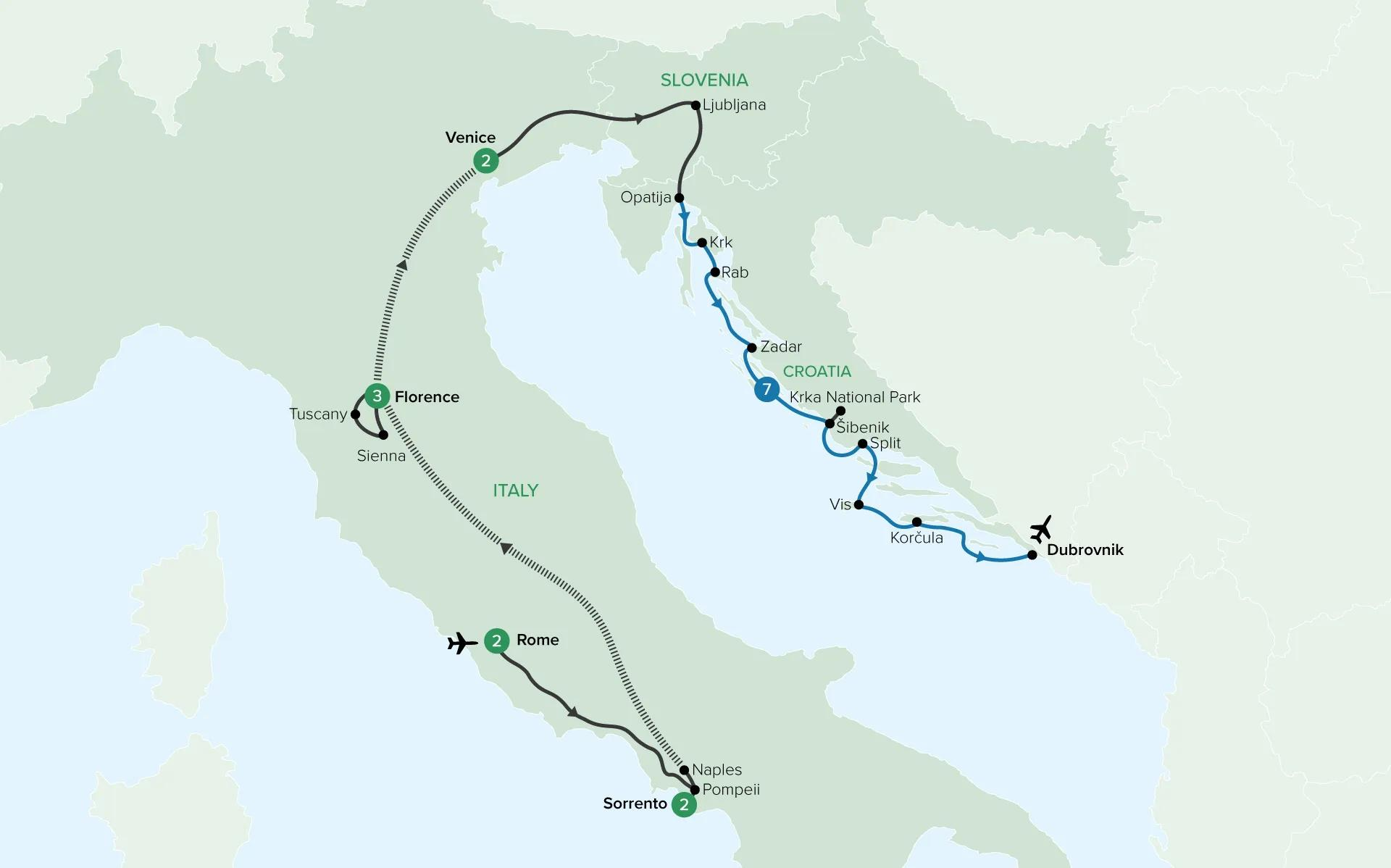Embark on a 17-day journey from Rome to Dubrovnik, blending Italy’s rich flavours with Adriatic charm. Explore iconic cities, coastal villages, and cultural treasures. Enjoy boutique stays, authentic cuisine, and a scenic cruise along the Adriatic coast. From Roman ruins to Croatian shores, this curated experience offers indulgence, discovery, and unforgettable Mediterranean beauty.