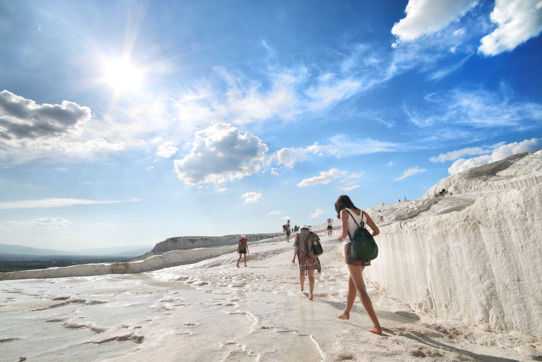 Today you'll drive to Pamukkale, best known for its mineral-rich thermal waters that flow spectacularly down a terraced hillside. Take a restorative dip in these thermal hot springs and explore the nearby ancient city of Hierapolis. The city was an important Roman bath centre founded by the King of Pergamon in 190 BC. Your leader will bring history to life and guide you through an ancient temple, holy area, monumental fountain, bath, basilica, necropolis and an impressive theatre. Tonight, you can enjoy a free evening in Pamukkale.