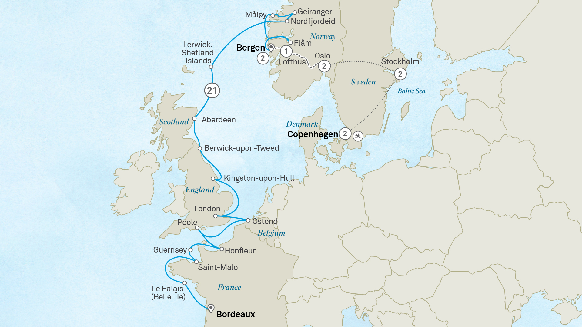 Embark on an extraordinary 31-day Land Journey & Signature Yacht Cruise through Europe’s most captivating coastal and cultural treasures. From the world-class vineyards of Bordeaux to the striking fjords of Norway and the regal capitals of Scandinavia, this Ultimate Journey blends indulgent culinary delights, historic marvels and breathtaking landscapes.