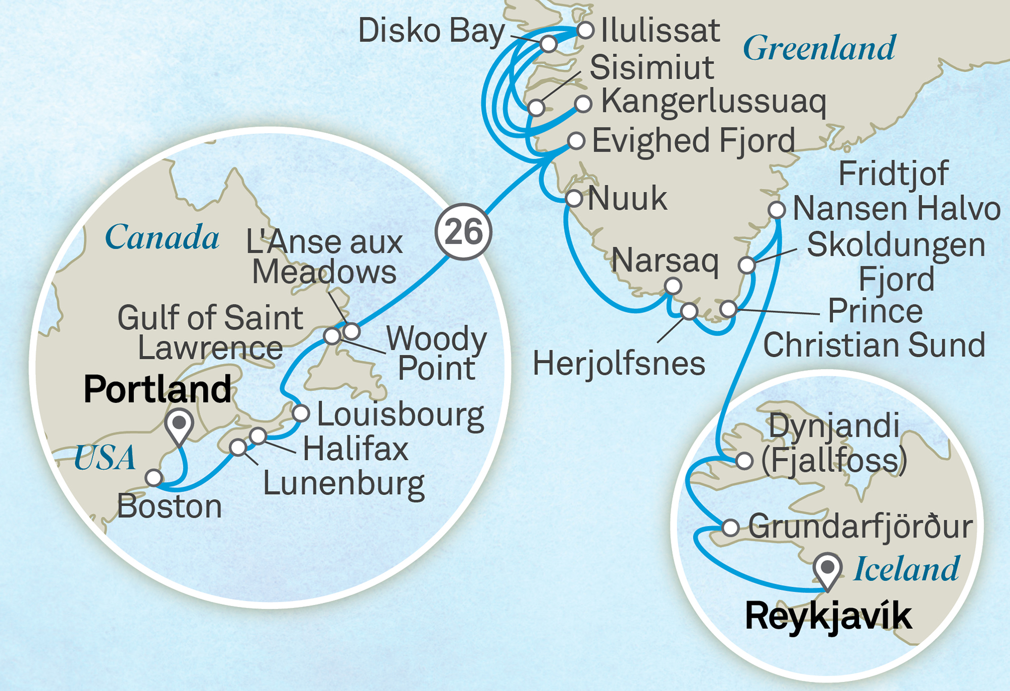 Scenic Discovery: Weather permitting and with harbour master approval, experience a Zodiac landing at Herjolfsnes with the on-board Discovery Team. Once ashore, set out on a moderate hike across the tundra to explore 10th-century Norse ruins and a cemetery from a 500-year-old settlement. Keep a look out for Arctic fox and numerous birdlife.