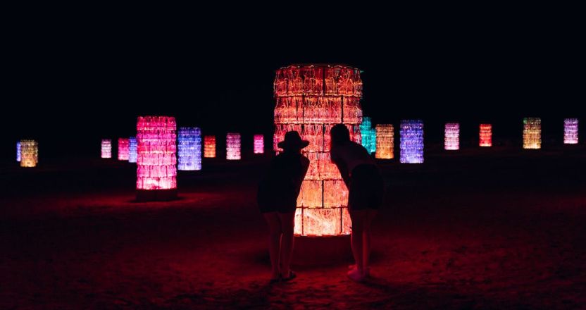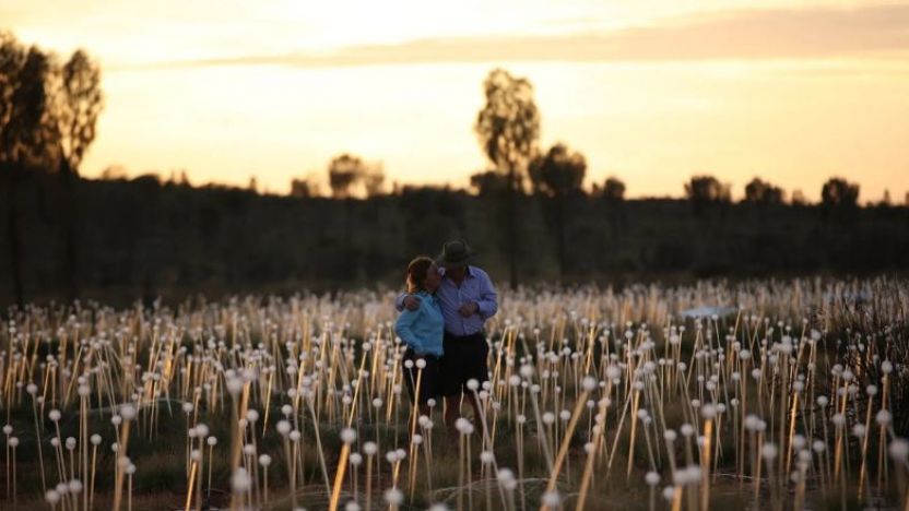 Your Sounds of Silence experience this evening begins with canapés and chilled sparkling wine upon a dune top overlooking the Uluru-Kata Tjuta National Park. As the sun sets and darkness falls, listen to the sound of a didgeridoo and dine with fellow travellers at a shared table of up to 10 guests for an unforgettable dining experience. Attentive staff will offer a selection of Australian wine and beer while the first course is served at your table. As the night sky twinkles to life, you will be welcomed to an interactive chef’s station where you will be served your choice from our freshly prepared, bush tucker inspired menu incorporating native bush ingredients. Settle back and listen to our resident star talker decode the southern night sky. Locate the Southern Cross, the signs of the zodiac, the Milky Way, as well as planets and galaxies that are visible due to the exceptional clarity of the atmosphere.